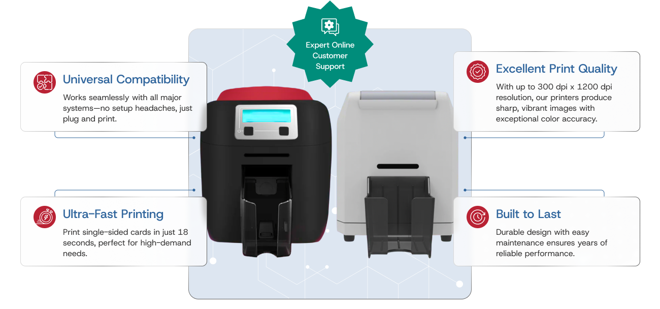 Unlike Others, No Extra Purchases—Get Your Printer, Ribbon, ID Cards, Software, and Support All in One Package. Ready to Use Right Away!