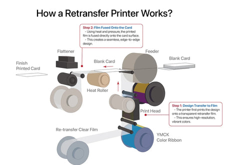 - Retransfer Printing: Prints onto a clear film first, then fuses the film onto the card using heat. Although these printers start around $3,500, they offer full-edge coverage, sharper prints, and better compatibility with embedded chips.
