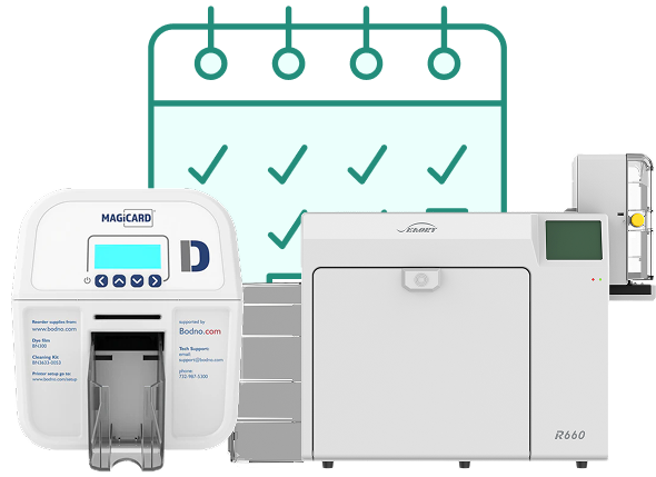 Make sure you’re fully prepared. Add compatible cards, ribbons, and accessories directly to your rental order.